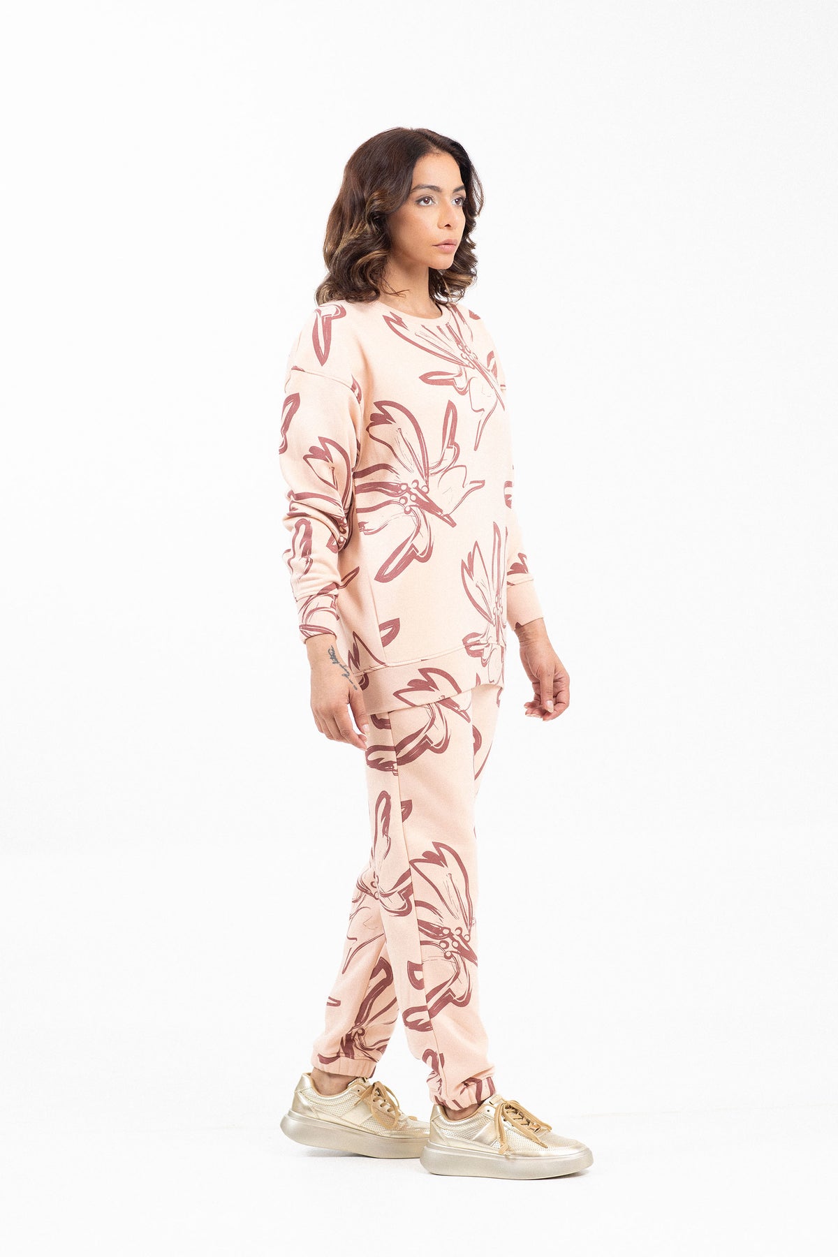 Baggy fit drop shoulder sweatshirt in fleece fabrication, featuring crew neck and an over all print