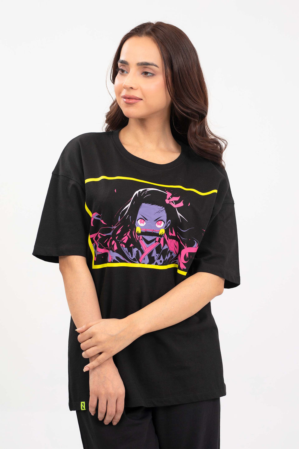 Drop shoulder tee shirt in jersey fabrication, featuring round neck and short sleeves with print in front
