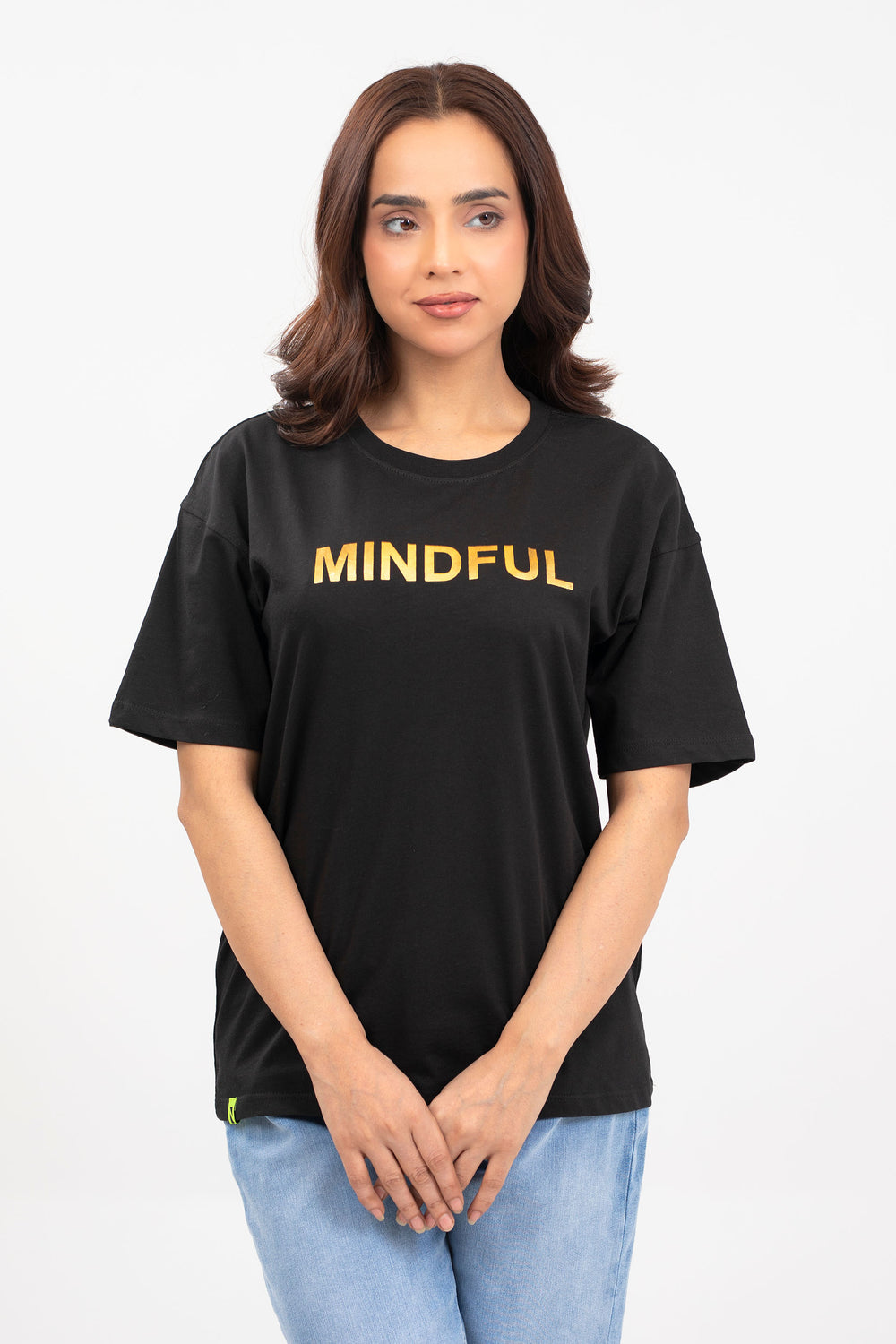 Drop shoulder tee shirt in jersey fabrication, featuring round neck and short sleeves with print in front