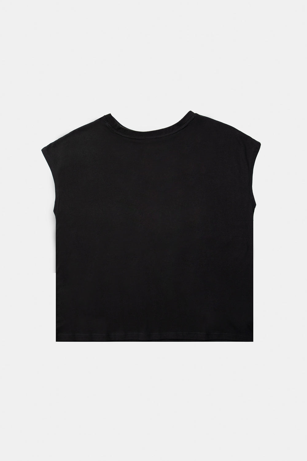 Drop shoulder sleeveless baggy tee shirt jersey fabrication, featuring deep V- neck