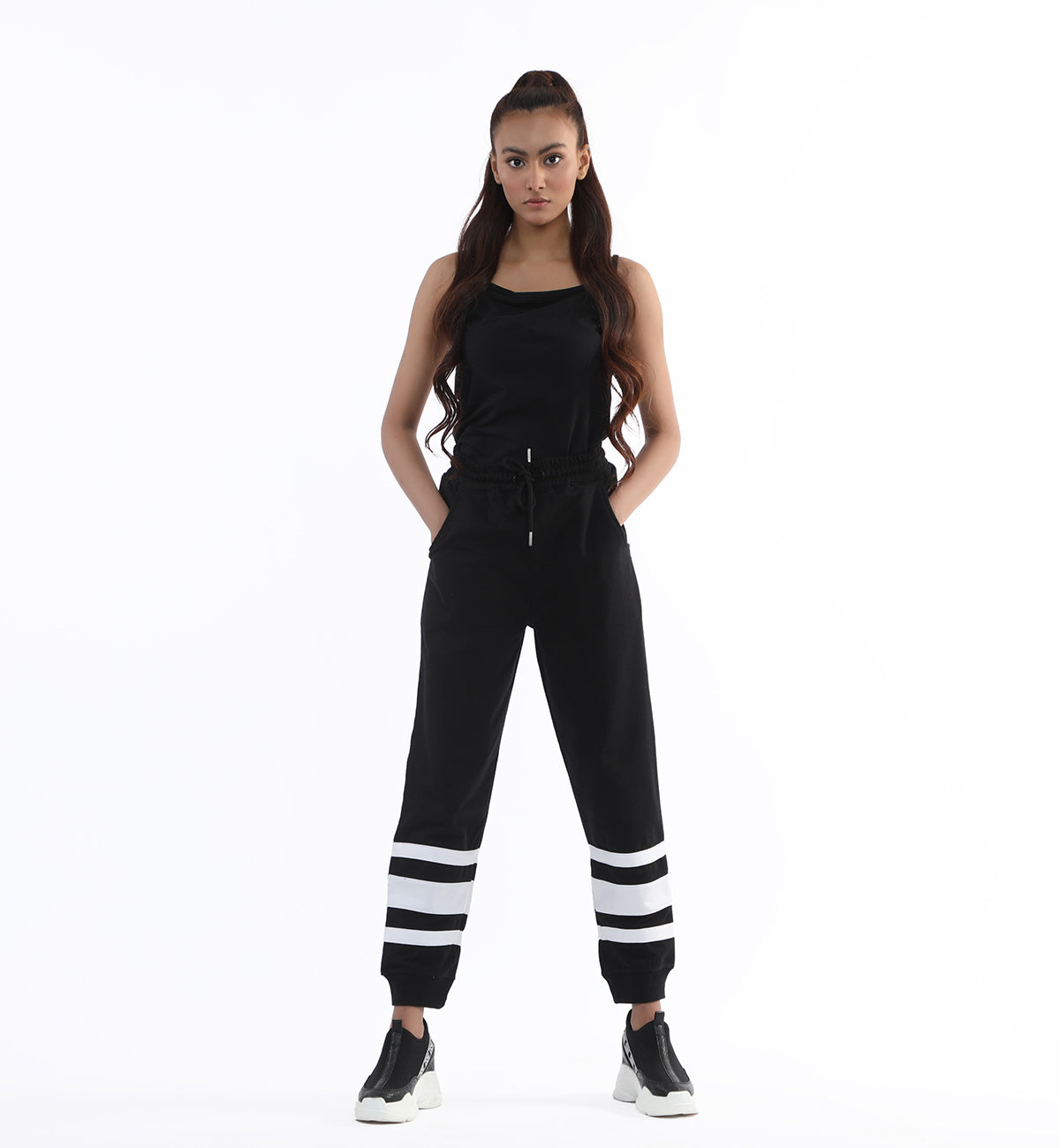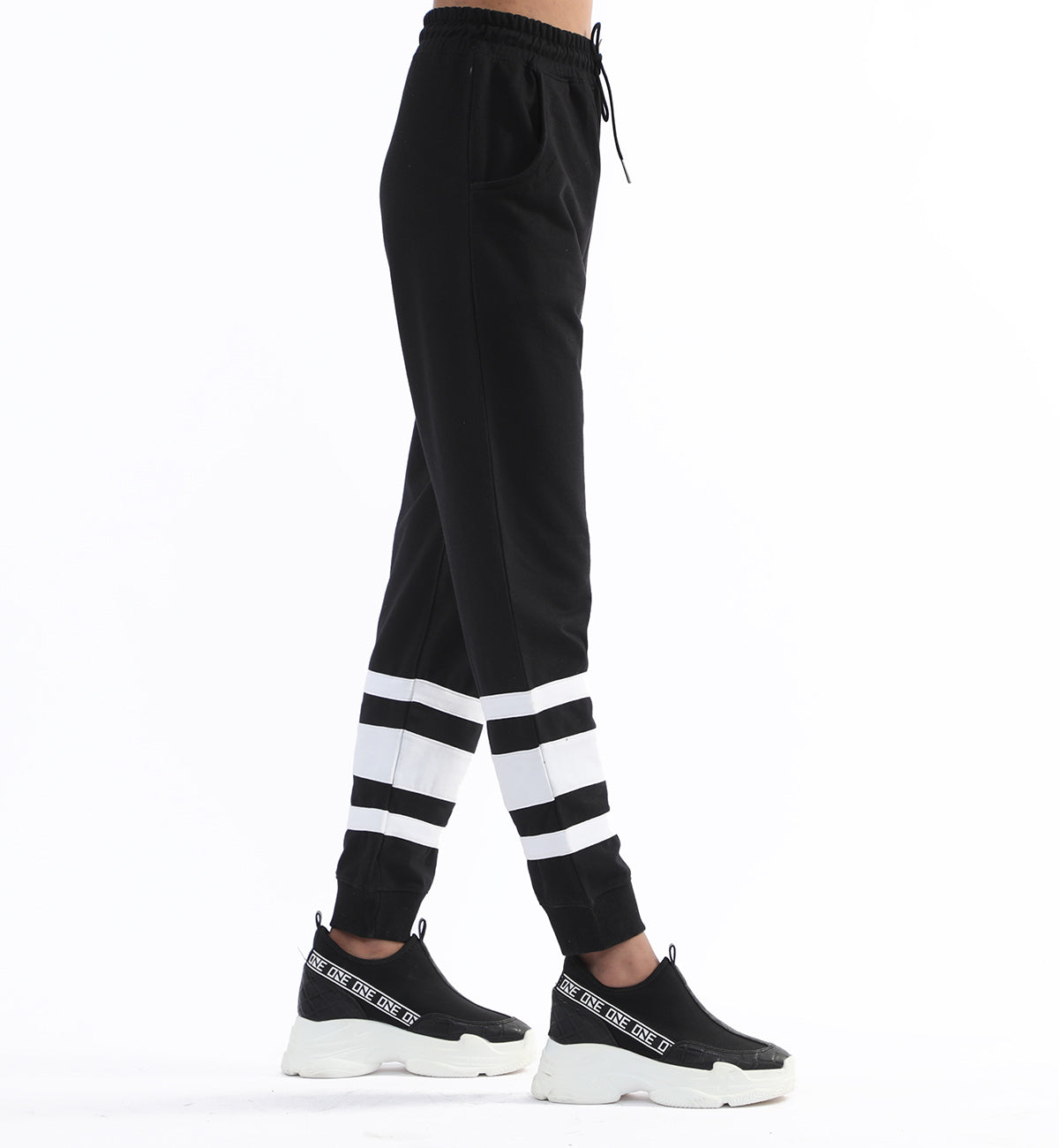 Cotton terry track pants, featuring elasticated waist belt with drawcord and pannel detailing