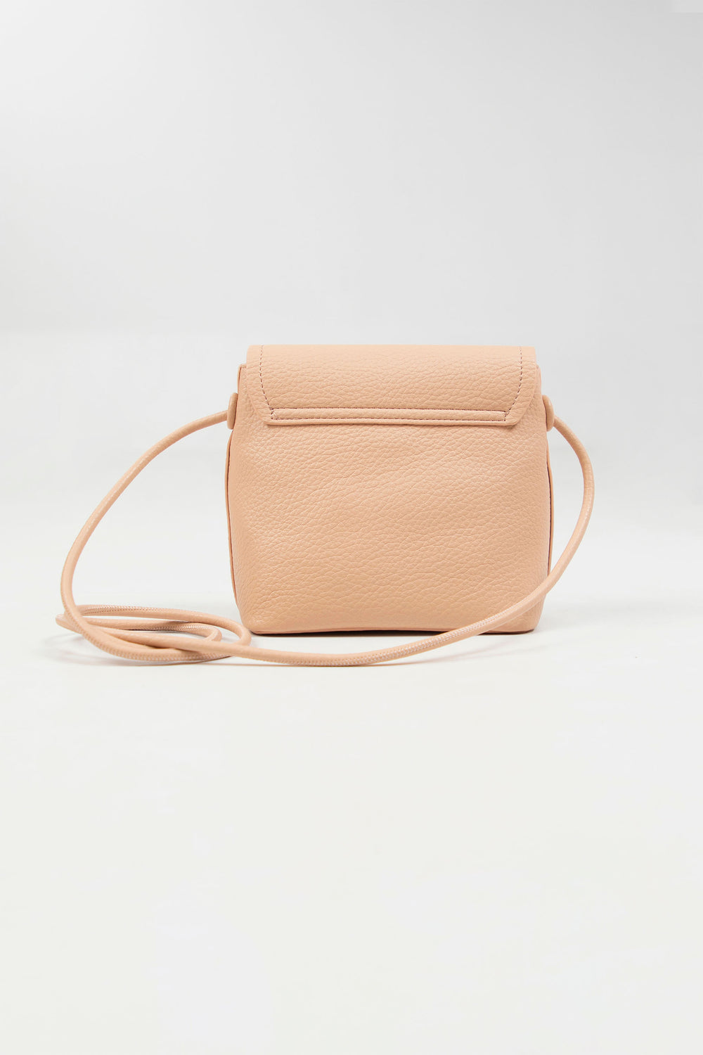 Faux leather bag in textured material, featuring flap over and rope style strap